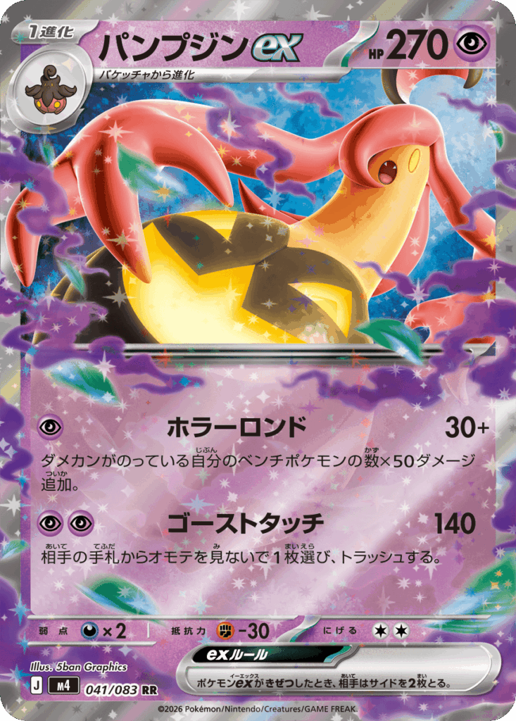 まず上ワザのホラーロンドは素点30に加えてダメカンが乗っている自分のベンチポケモンの数×50ダメージを追加できる。