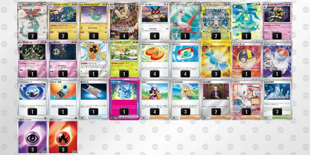 逆にドラパルトがこれだけ多いとドラパルトにリーリエのピッピを組み込む型も増えてくると思う。